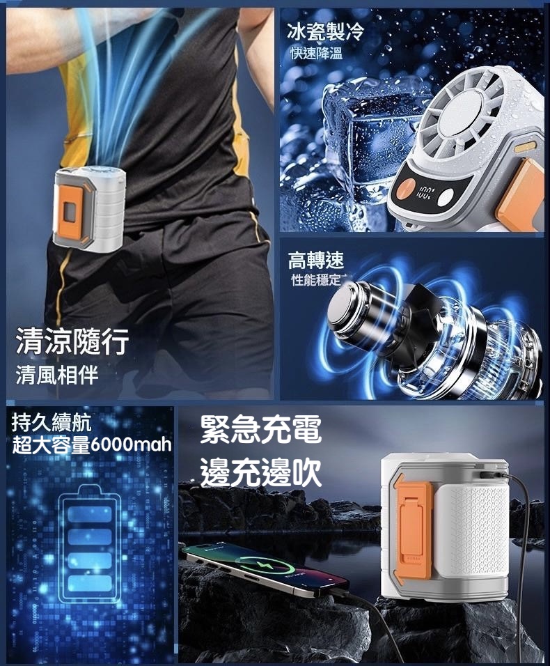 2025最新腰掛冷敷製冷風扇 6000mah大容量電池支援手機雙向充電 掛脖製冷風扇 支援快充