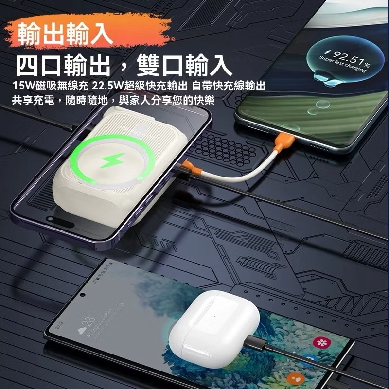 20000mAh 磁吸行動電源 標示wh可上飛機 無線磁吸 AC插頭 PD雙向快充 行動充電 無線充電