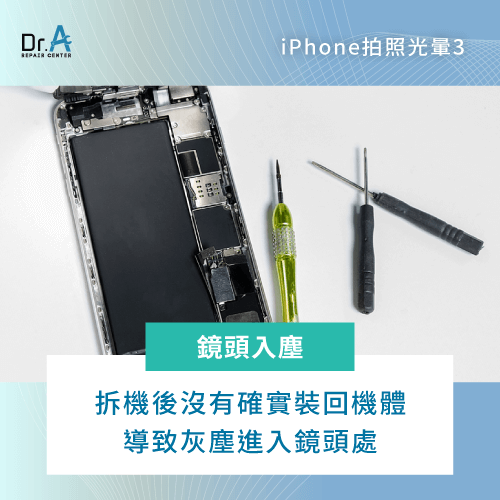 iPhone拍照光暈是什麼原因呢?大部分的iPhone維修都需要拆機,例如:電池、螢幕、鏡頭玻璃更換,但維修後沒有闔緊機殼,就有機率讓灰塵、沙粒進入,若是剛好掉入相機模組之間,拍照時會產生光暈、小黑點,建議在挑選iPhone維修店家可以選擇具備多年經驗、網路評價高分的店家,才更有保障哦!