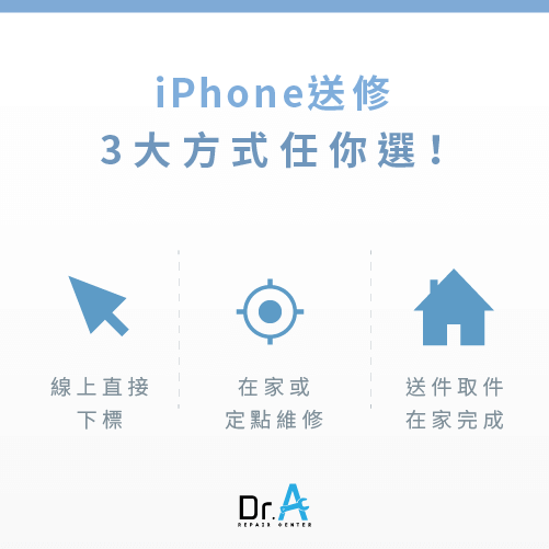 當iPhone電池效能開始不給力、系統越跑越慢、螢幕摔到或進水,就必須將iPhone送修,阻止災情擴大,並讓iPhone修復如初!但如果手邊有急事走不開怎麼辦?不是每次都有空閒時間將iPhone送修,Dr.A告訴你,除了預約親跑門市,還有其他維修方案可以選擇!