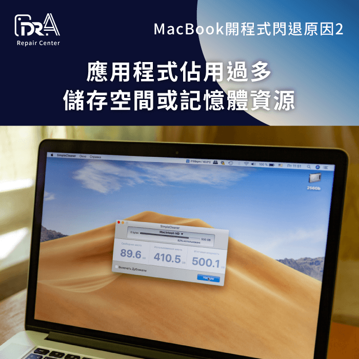 當應用程式佔用過多系統資源,且MacBook內部儲存空間或記憶體不足的情況,系統無法負荷多個應用程式同時運行,或某些應用程式需要的資源超過了可用資源上限,就可能導致程式閃退。