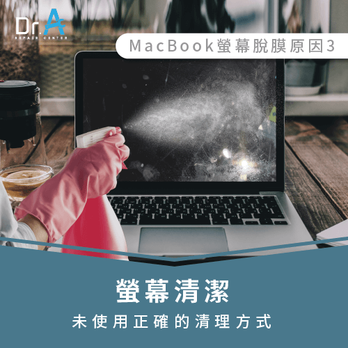 有固定清理螢幕的習慣是好的,但是否用正確的清理方式來清潔螢幕也是不可忽視的重點,比如:切勿使用酒精直接噴灑在螢幕上清潔,由於酒精屬於有機溶劑,可能腐蝕塗層造成螢幕受損,導致MacBook螢幕脫膜。也盡量避免使用衛生紙清理螢幕上的髒污,使用衛生紙來回擦拭時容易在螢幕上產生刮痕或將油汙推散,使得螢幕更加難以清潔並造成棉絮附著在螢幕上,如果在清理過程沒有注意到這些小細節,長期使用下,容易加速MacBook螢幕脫膜的可能。