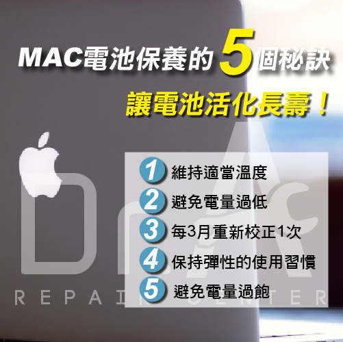 Dr.A建議您:應頻繁使用Mac,隨時充電,同時充電時注意電量避免超過50%,如此一來,彈性地活用Mac,才是讓電池活化長壽的關鍵喔!